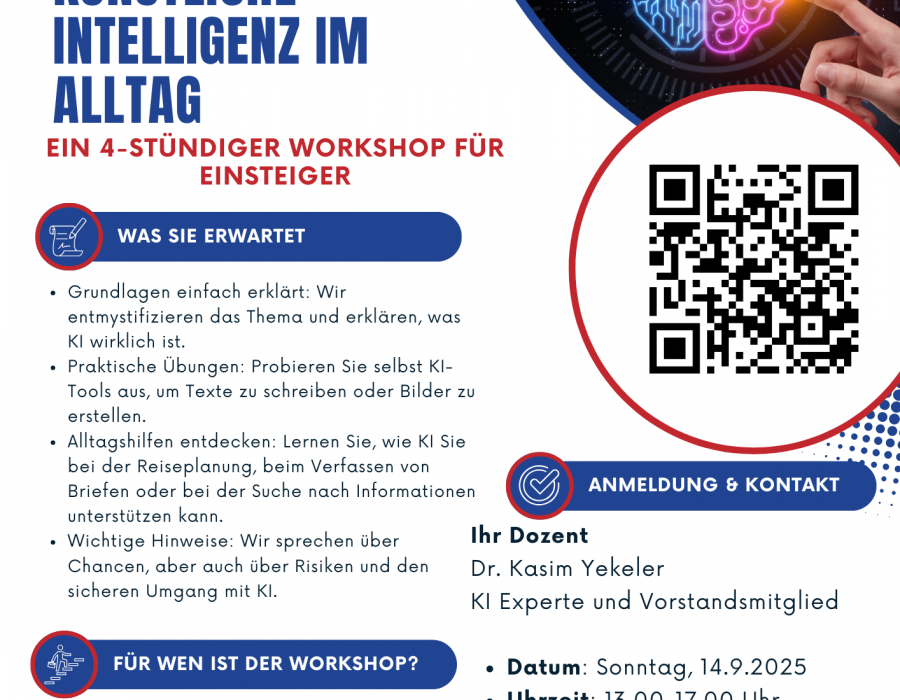 Workshop: Künstliche Intelligenz im Alltag verstehen und nutzen Entdecken Sie die Welt der KI – einfach und praxisnah